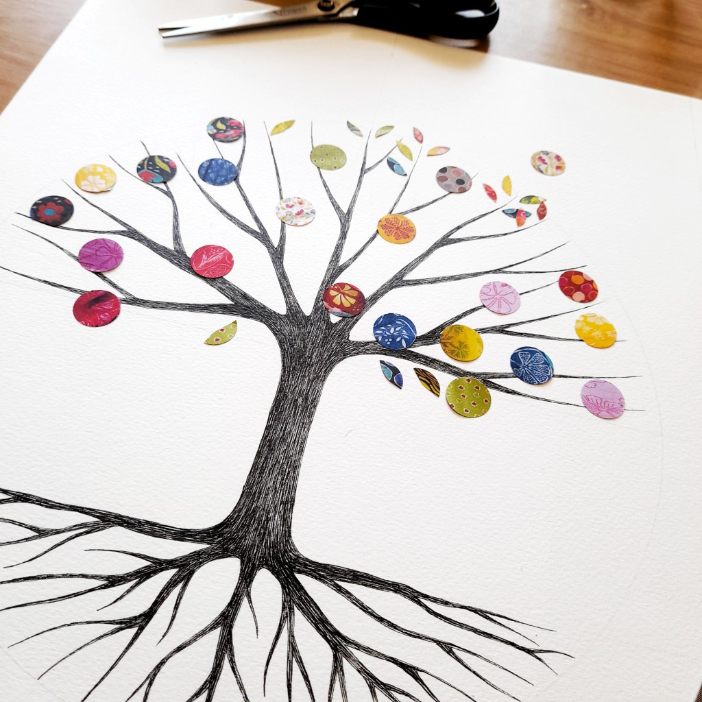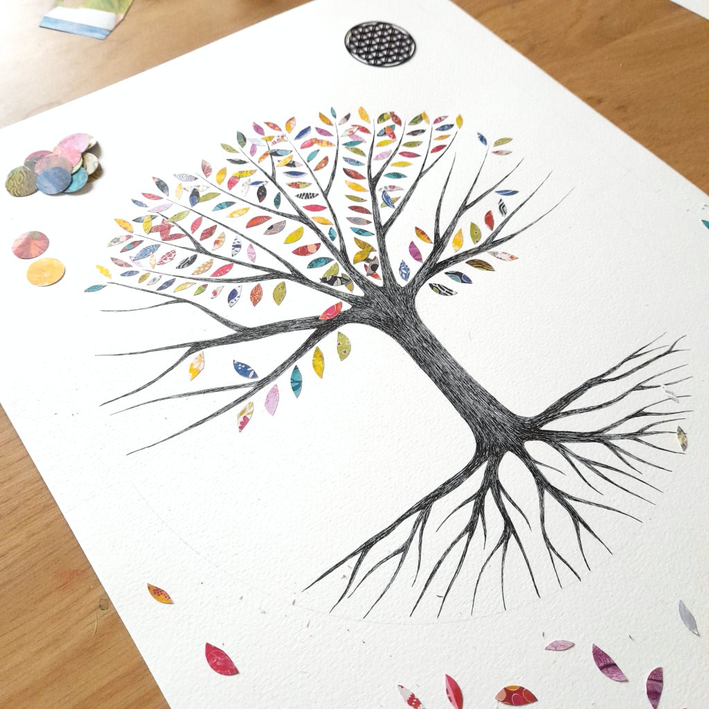 Un travail en cours en grand format (30×40 cm) qui avance tranquillement… chaque pétale sera un éclat de joie, passé ou à venir. Je prends mon temps, accompagnée de ces vers de Guillevic : « A force de croire / A sa propre joie, // La voici / Qui a le dessus. »