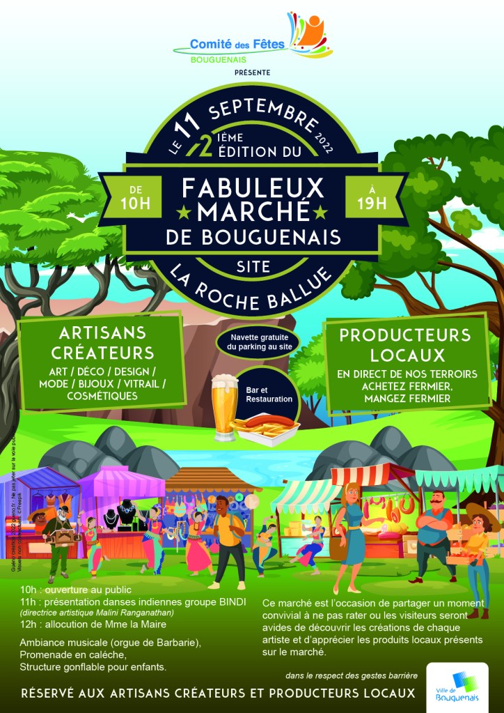 Le Fabuleux marché de la Roche ballue septembre 7, 2022 | yaminaviguier Retrouvez-moi ce dimanche au fabuleux marché de la Roche Ballue à Bouguenais Partager : Partager sur X(ouvre dans une nouvelle fenêtre) X Partager sur Facebook(ouvre dans une nouvelle fenêtre) Facebook J’aime chargement… Similaire