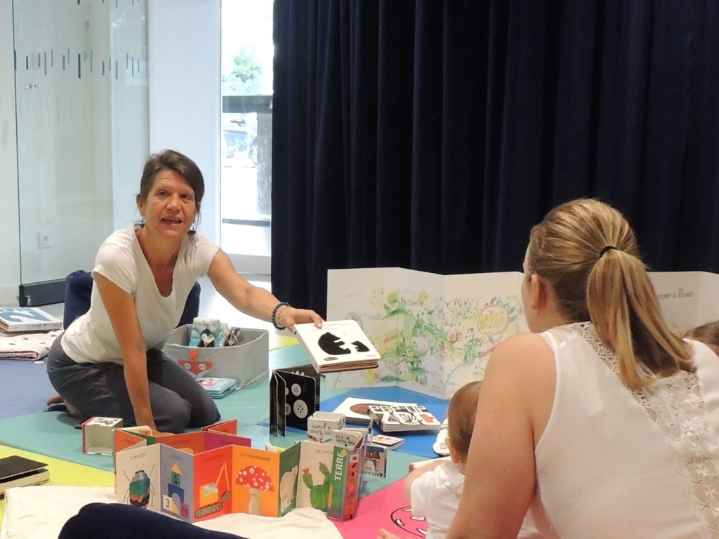 Lire des histoires au tout-petit est essentiel mais lui permettre de manipuler les livres l’est tout autant et ce, dès ses premiers mois. Livres à toucher, à goûter, livre-maison sous lequel se cacher, livre tapis sur lequel ramper et se retourner… tout est possible et imaginable ! Parents et enfants s’installent ensemble dans un espace aménagé pour eux au milieu de livres soigneusement choisis. On les manipule, on les découvre, on les raconte ensemble ou chacun pour soi… En toute simplicité, on observe comment ils peuvent rejoindre les hochets sur les tapis d’éveil.