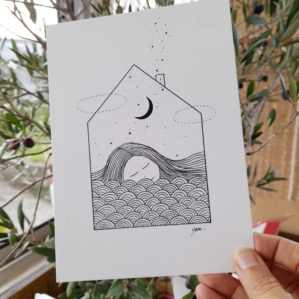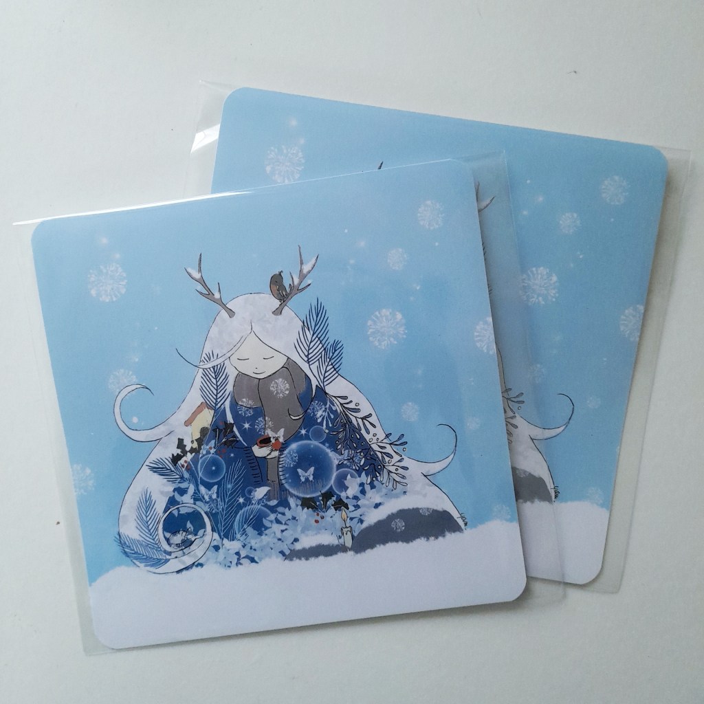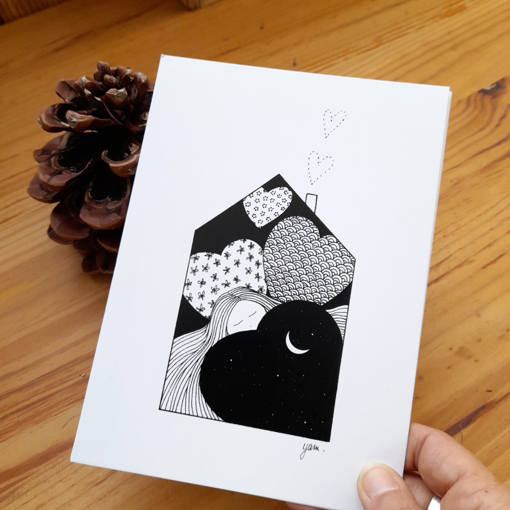 Les cartes illustrées sont toutes imprimées sur papier de haute qualité 300 g. Certaines d’entre elles peuvent être commandées directement en ligne dans ma boutique ReLierCreation.