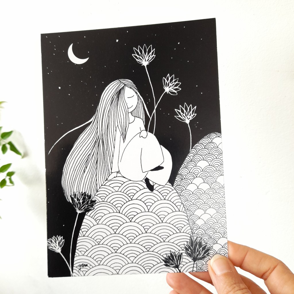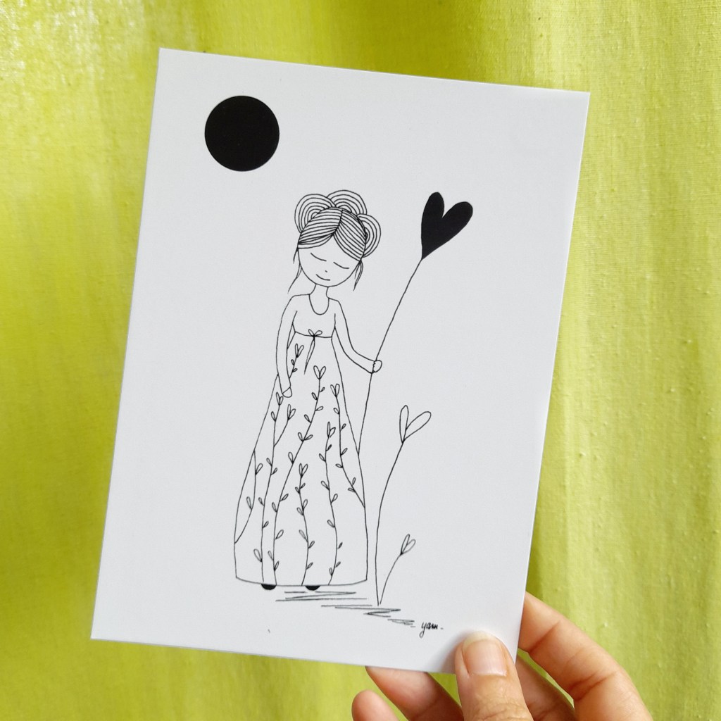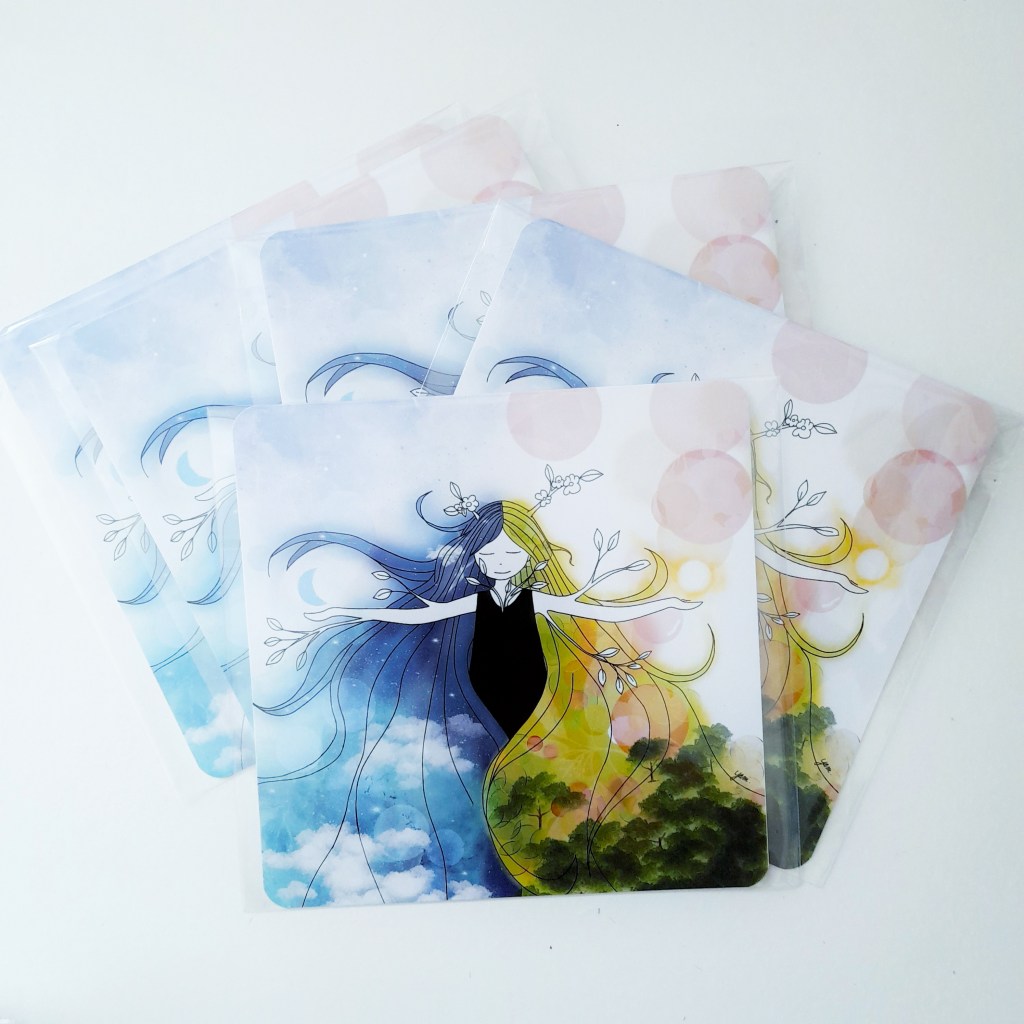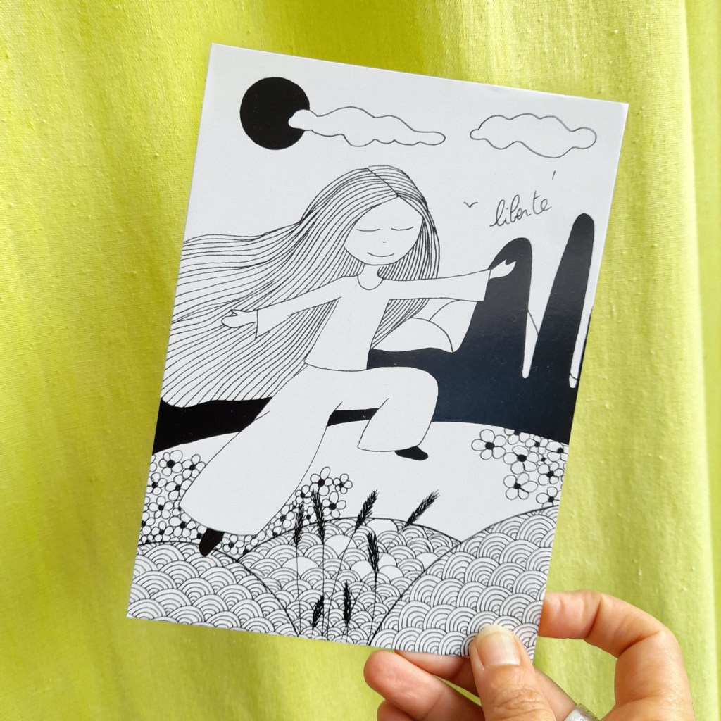 Les cartes illustrées sont toutes imprimées sur papier de haute qualité 300 g. Certaines d’entre elles peuvent être commandées directement en ligne dans ma boutique ReLierCreation.