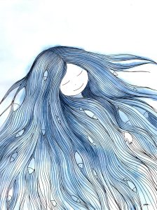 La femme-élément : série commencée en 2020 et encore en cours. Aquarelle, dessin et parfois collage sur papier Canson 120 g.