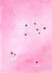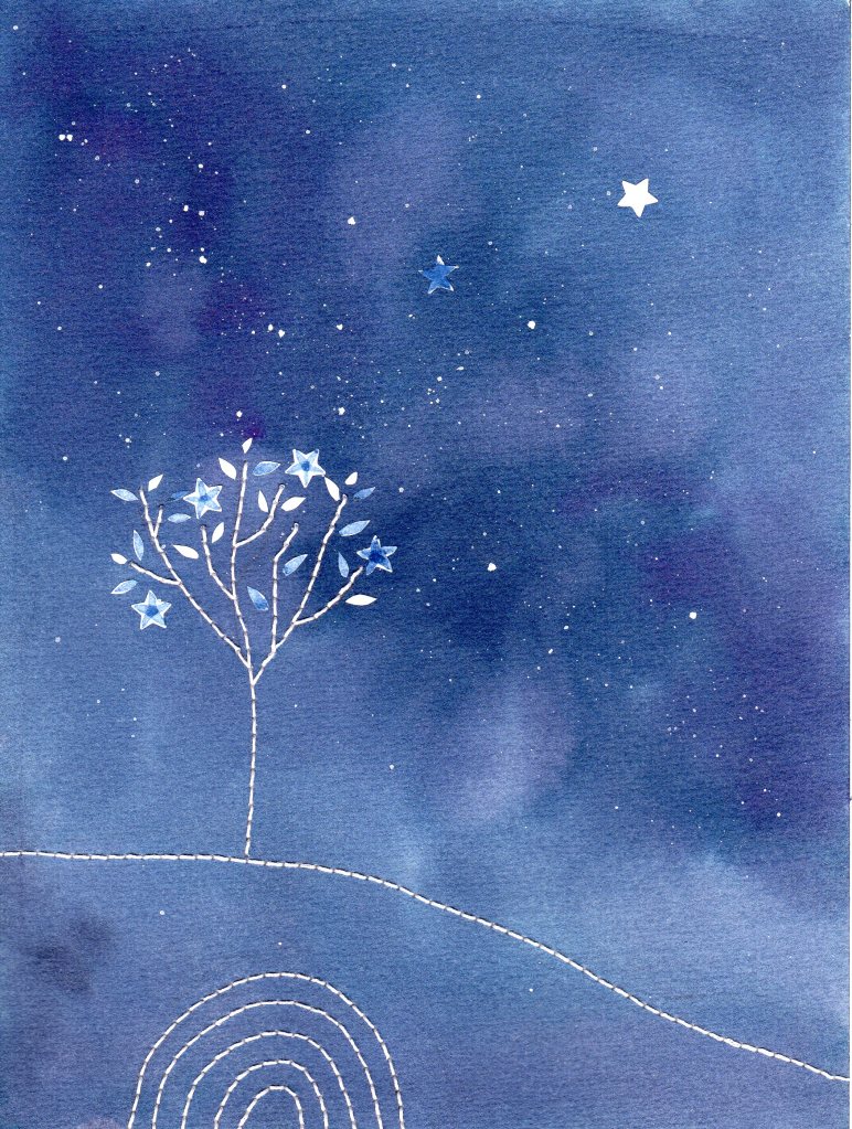 Série Fleurs d’étoiles – papier cousu : aquarelle, collages et couture sur papier Fontaine 300 g. 100% coton.