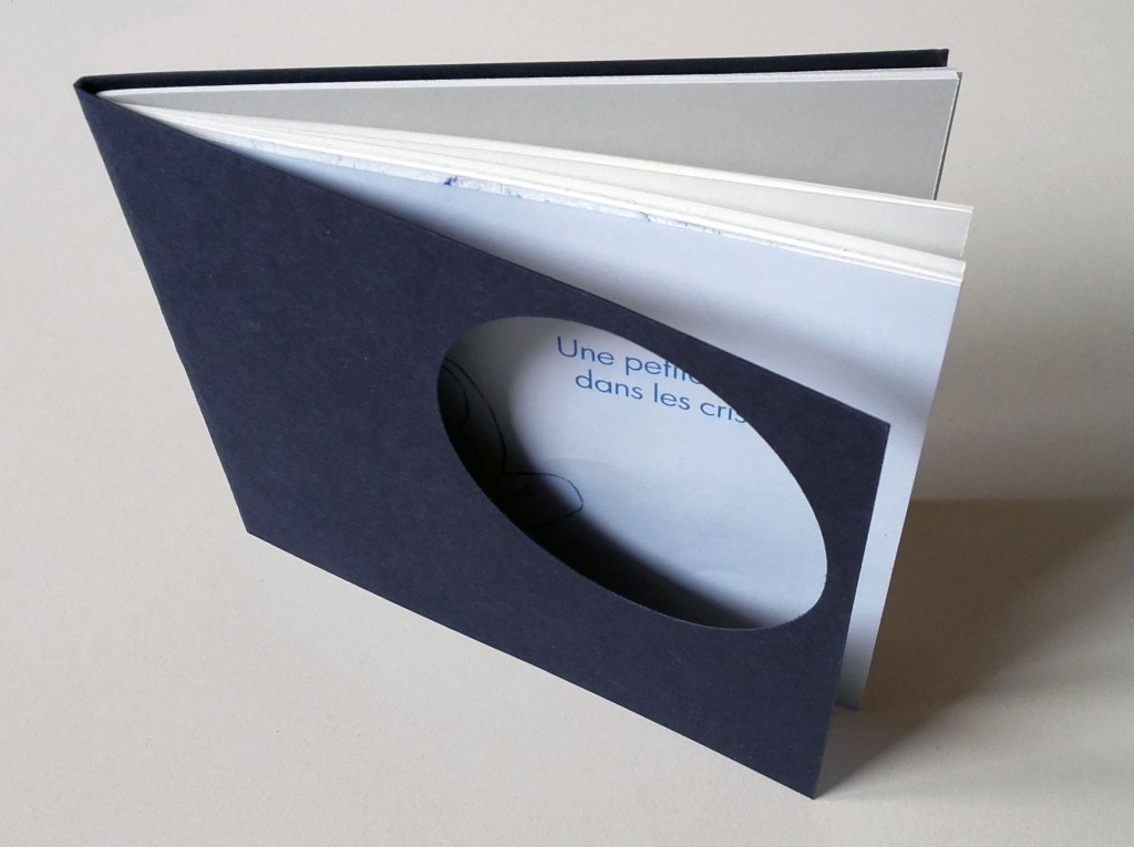 Livre de poésie, couverture cartonnée bleue nuit, reliure agrafe.